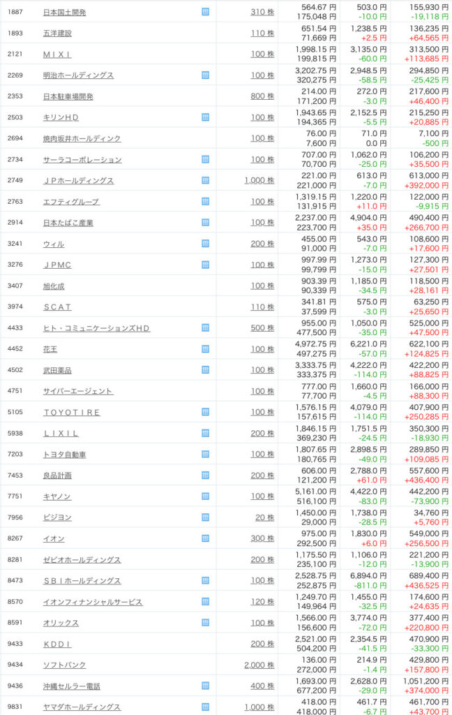 しかし、私は高市銘柄の半導体、防衛セクターなどは保有しておらずわずかな上昇で終わりました。
